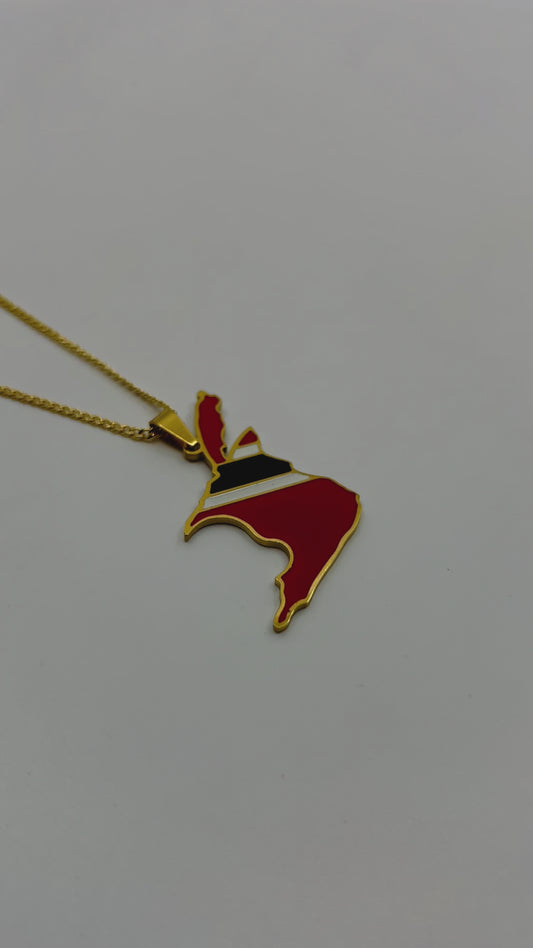 Trinidad & Tobago Map Necklace – Engravable Gold Stainless Steel Heritage Jewelry