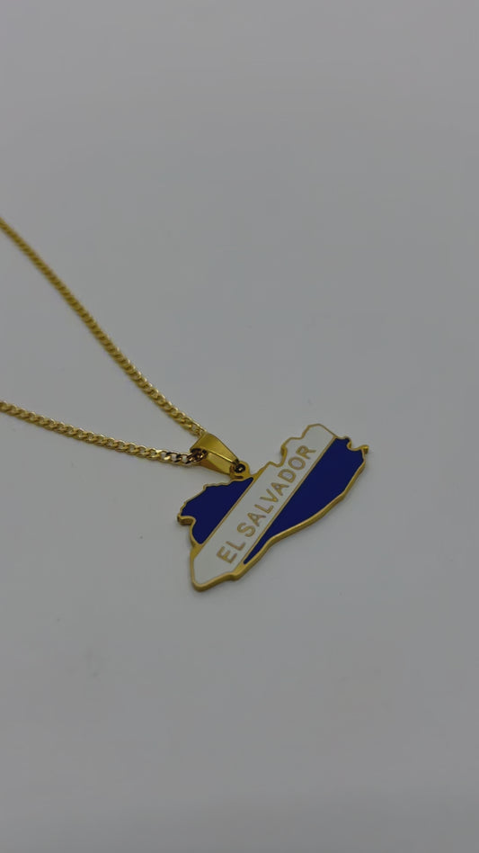 El Salvador Map Necklace – Engravable Gold Stainless Steel Charm Necklace