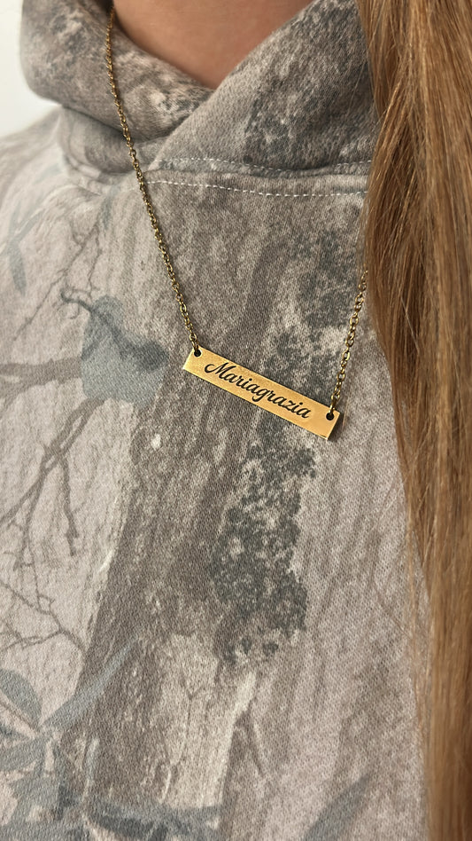 Engraved Bar Necklace, Gold or Silver, Stainless Steel
