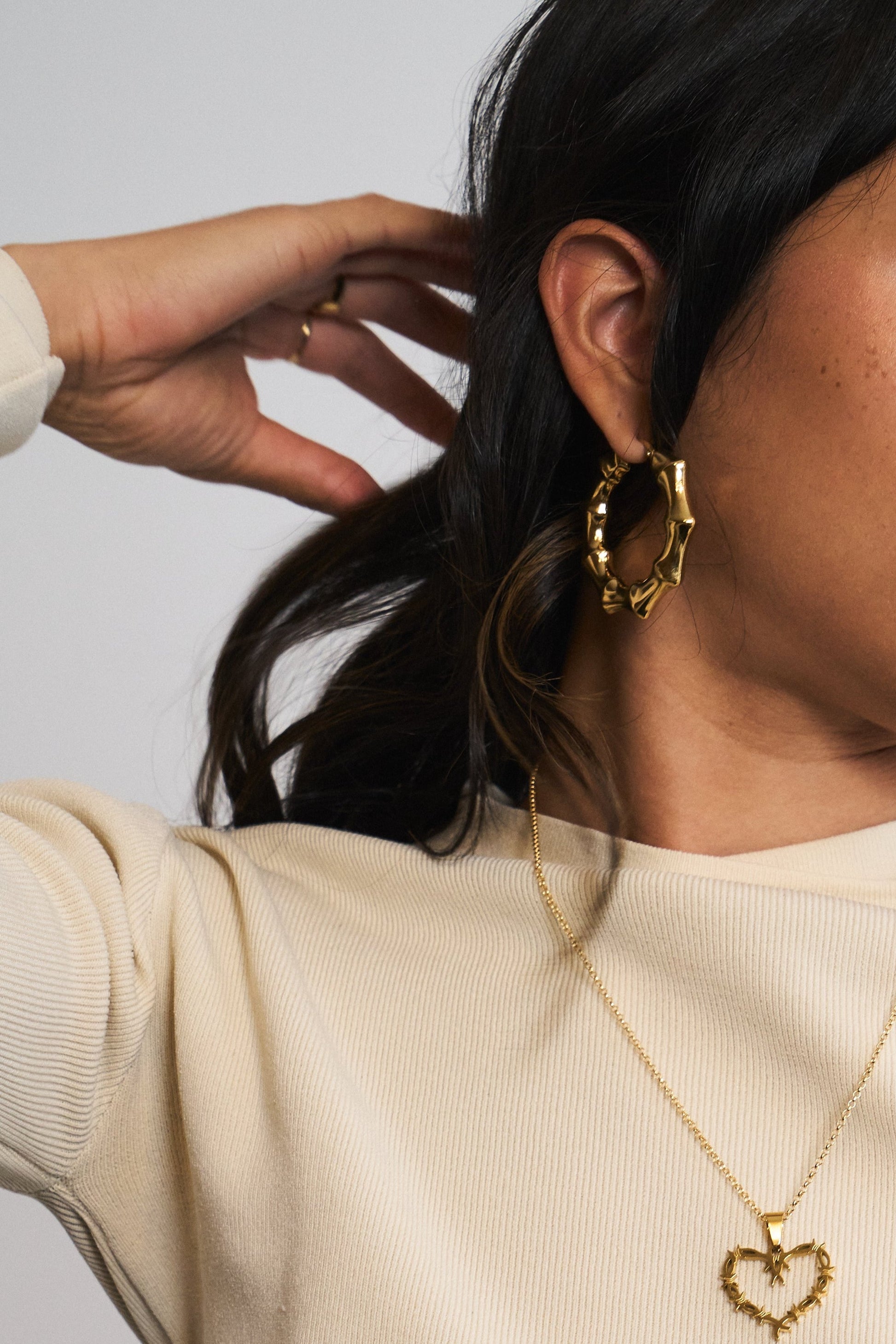 To best care for the jewelry, we suggest avoiding exposure to chlorine and salt water, humidity, perfume, and lotion, as they can affect the jewelry over time. Store in the pouch provided. Our jewelry is tarnish resistant.
