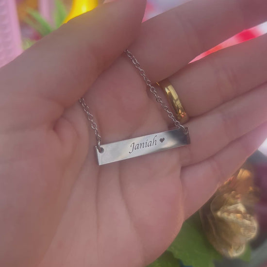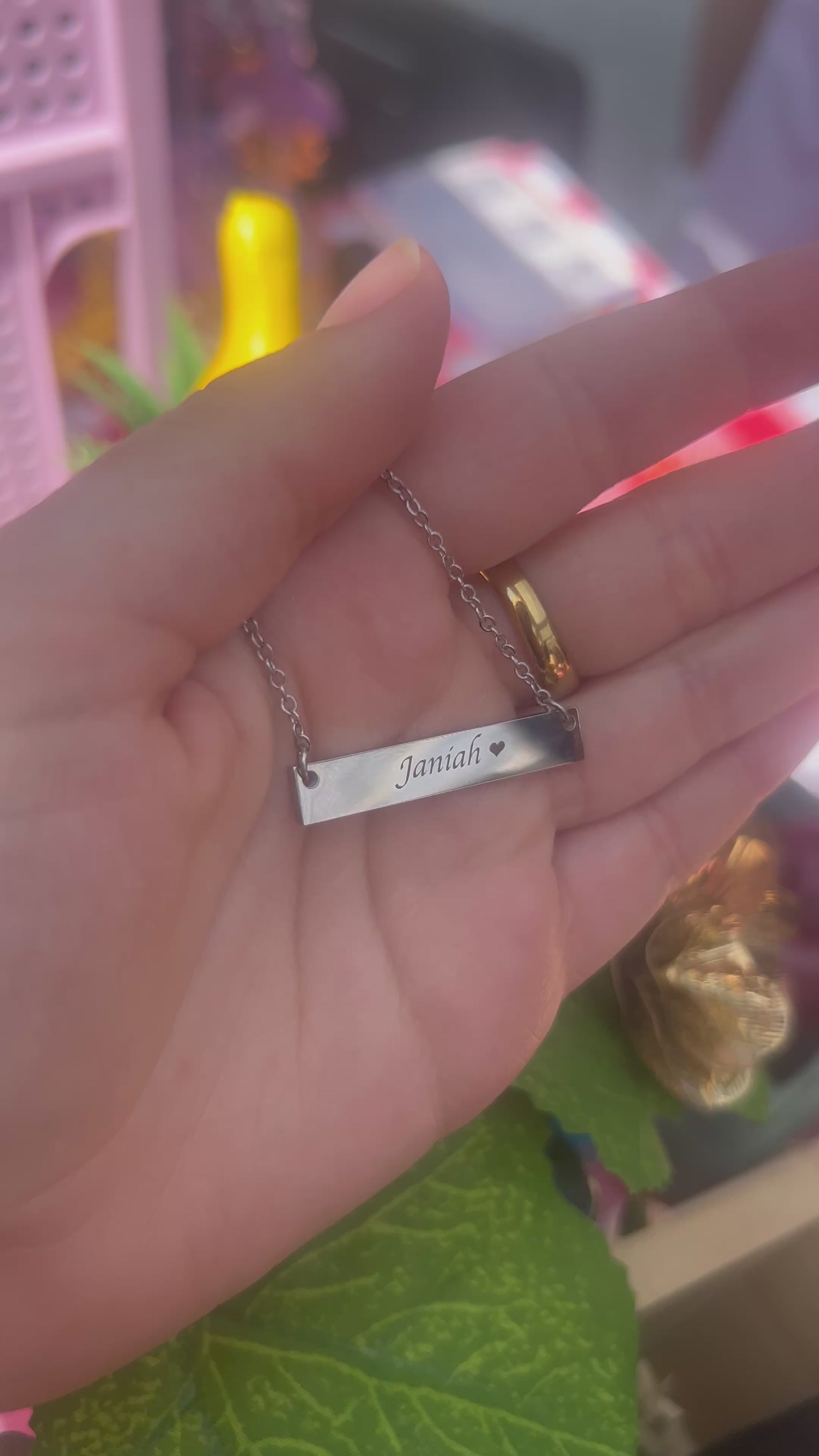 Engraved Bar Necklace, Gold or Silver, Stainless Steel