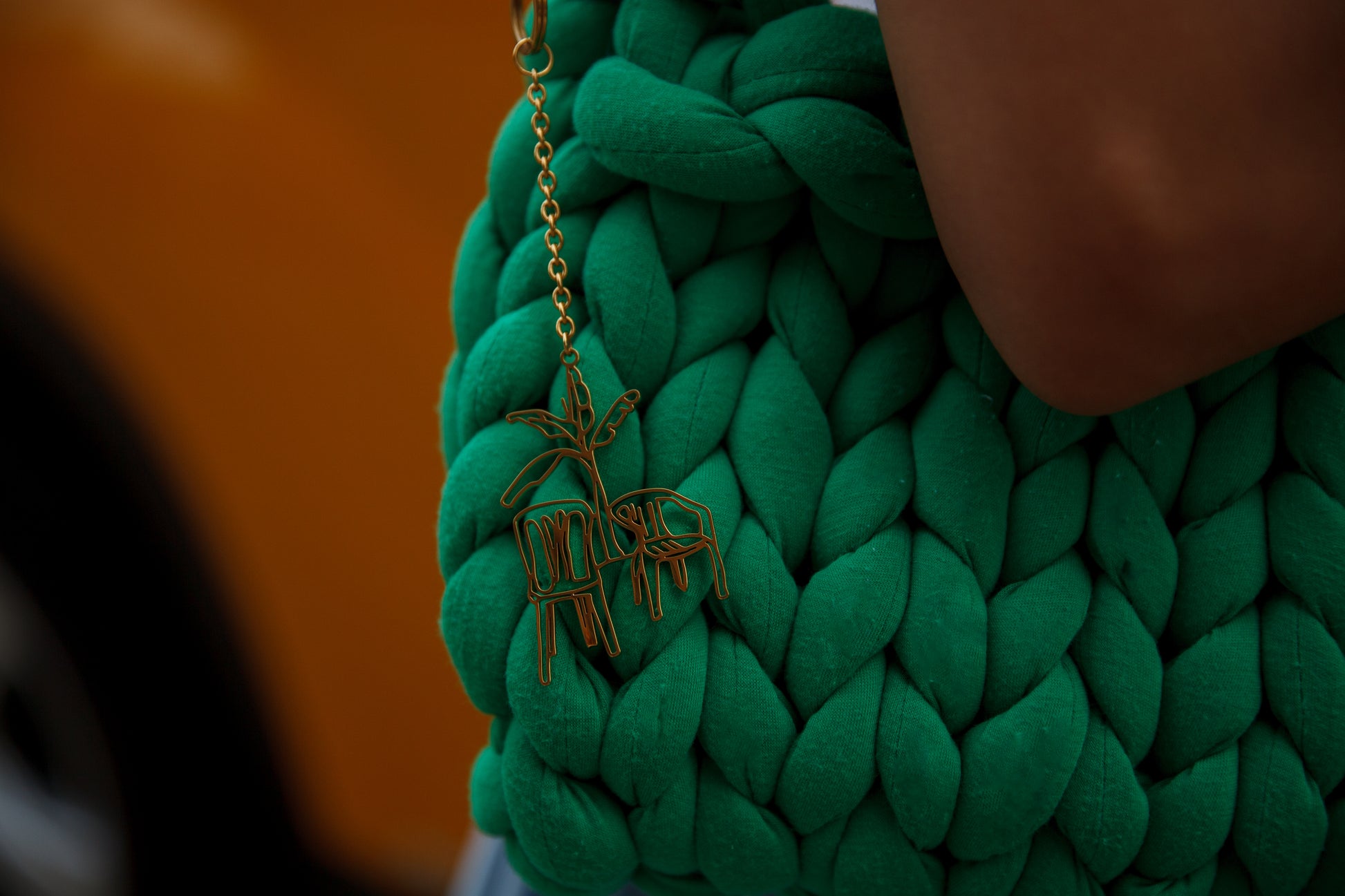 Inspired by summer days in Latin America, this Palm Tree & Plastic Chairs Bag Charm captures the essence of moments shared in the fields, farms, and backyards. Its delicate, line-art design showcases the iconic palm trees alongside the classic plastic chairs that hold countless memories of relaxation, conversation, and togetherness.